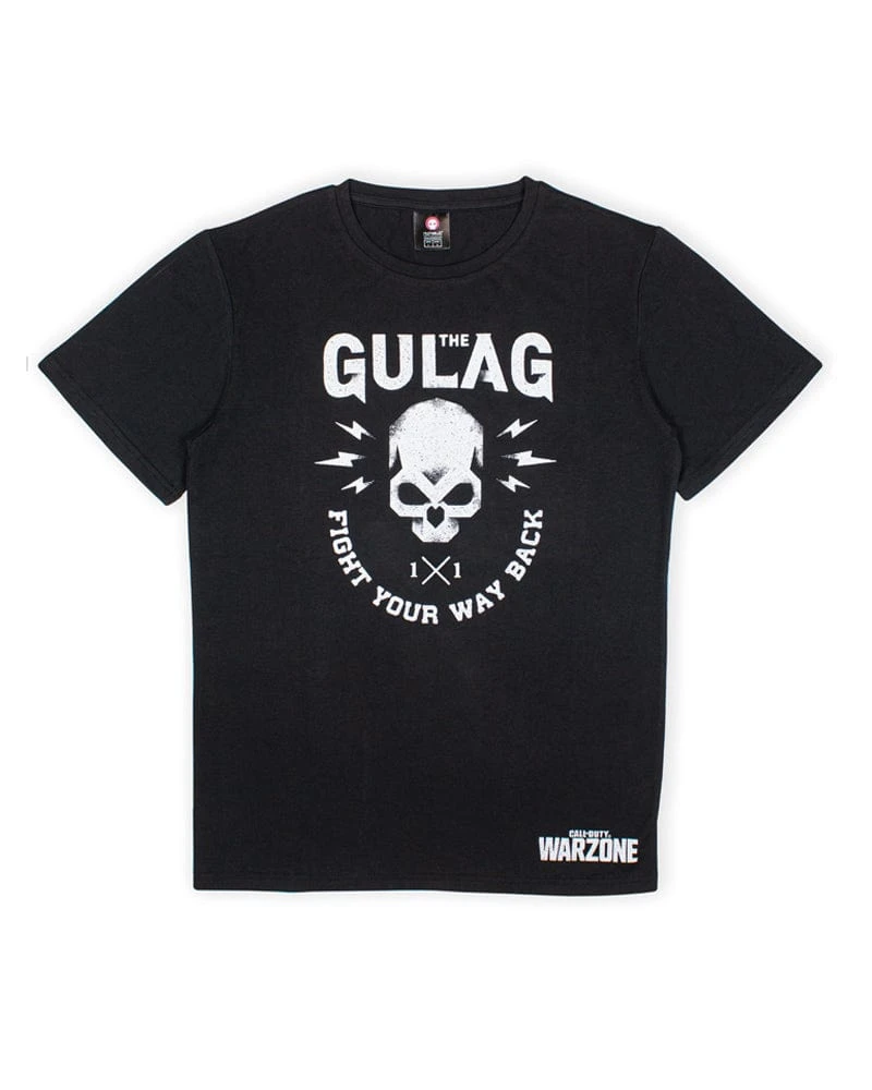 Everyone in the Gulag might be looking damp and sweaty after being captured in Verdansk, but that doesn’t mean you can’t look fresh just before your fight back into the battlefield! That’s why this premium cotton tee is the perfect apparel for any Gulag regular as it’s sure to distract your opponents with its stylish aesthetic.Official Activision product.Designed and engineered by Numskull Designs.Black t-shirt featuring Gulag design.Made from 100% premium cotton.Unisex design and fit.Available in sizes 2XS – 2XL.