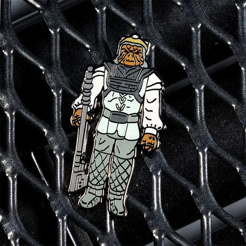 - Two premium quality hard enamel metal pins with a glossy finish featuring Nien Nunb and Nikto on a backing card.