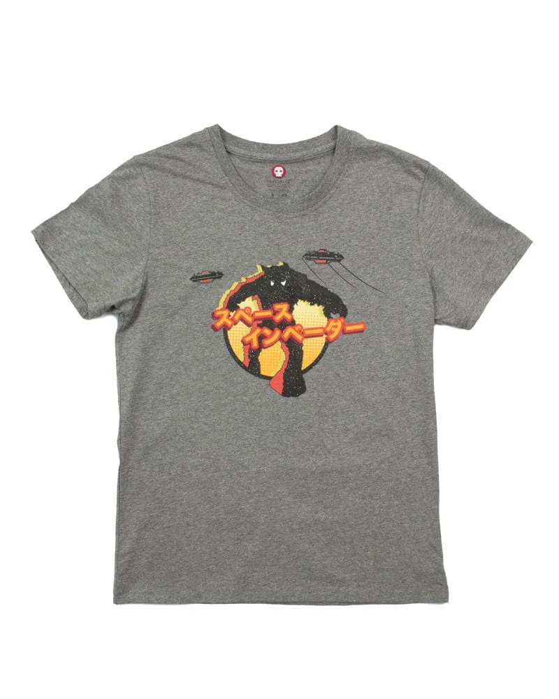 Become the coolest retro Space Invaders gaming fan in seconds by slipping into this official Space Invaders Monster T-Shirt. Displaying the eye-catching monster design from the original arcade artwork bursting from the chest of the shirt with the Space Invaders title in Japanese, it’s the ultimate unique merchandise piece every gamer should be wearing!Official Taito productMade from 100% cottonFeatures distressed monster chest pieceSpace Invaders title in Japanese textUnisex designAvailable in sizes XS-2XL
